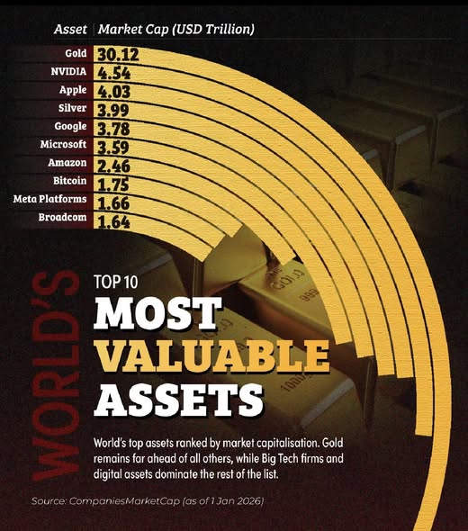 Gold's capitalization today is approximately $30 trillion. That is roughly half the capitalization of the entire American stock market. It is more than any single company, technology, or digital asset. Interestingly, documented oil reserves theoretically have even three times the value of the gold held in global reserves. And yet, it is gold that serves as the global point of reference.